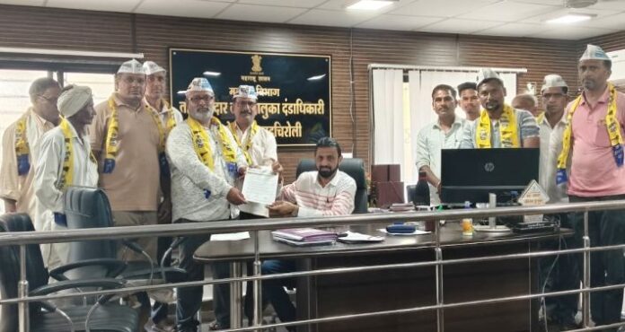 कुरखेडा : गडचिरोली जिल्ह्यात यंदा मोठ्या प्रमाणात मका पिकाची लागवड झाली असून उत्पादन चांगले आले आहे. मात्र योग्य बाजारभाव न मिळाल्याने शेतकरी चिंतेत आहेत. या पार्श्वभूमीवर जिल्ह्यात धान खरेदी केंद्रांसोबतच मका खरेदी केंद्र तातडीने सुरू करावे आणि हमीभावाने (MSP) शेतकऱ्यांकडील धान खरेदी करण्याची व्यवस्था करावी, अशी मागणी आम आदमी पार्टीच्या वतीने कुरखेडा तहसीलदार राहुल पाटील यांच्यामार्फत जिल्हाधिकाऱ्यांना निवेदन सादर करून करण्यात आली.