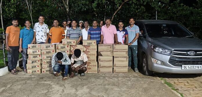 कारमधील लखन जोहरी बेसा (रा.बेडगाव) आणि धम्म गुणवंता बोरकर (रा.गिधाडी, जि.गोंदिया) या दोघांना अटक करण्यात आली. त्यांनी हा माल निर्मल आणि त्याच्या मुलाचा असल्याचे पोलिसांना सांगितले. त्यामुळे त्यांचा शोध सुरू आहे.
