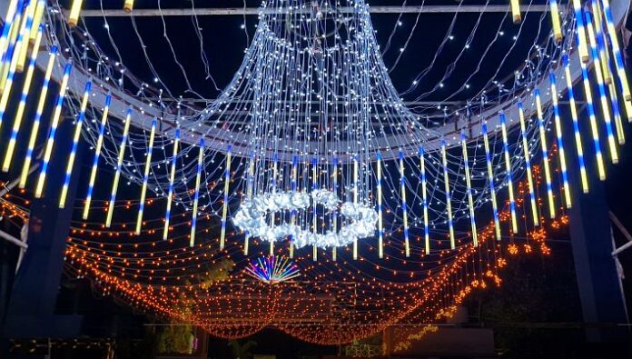 विद्युत रोषणाईच्या झगमगाटात उजळून निघताहेत गणेश मंडप