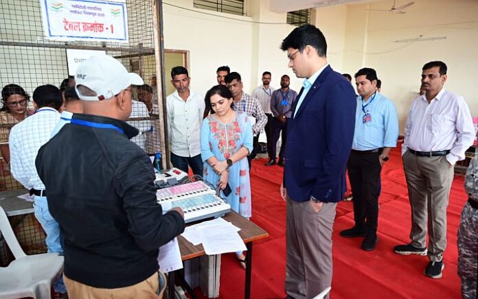 गडचिरोली : नगर परिषद निवडणुकीच्या अनुषंगाने मतदानाची प्रक्रिया 2 डिसेंबर रोजी पार पडणार आहे. या पार्श्वभूमीवर जिल्हाधिकारी अविश्यांत पंडा यांनी शनिवारी कृषी महाविद्यालयात सुरू असलेल्या ईव्हीएम कमिशनिंग प्रक्रियेची तपशिलवार पाहणी केली. मतदान यंत्रांच्या कार्यपद्धतीची तपासणी करून ते सुस्थितीत असल्याची खात्री त्यांनी केली.