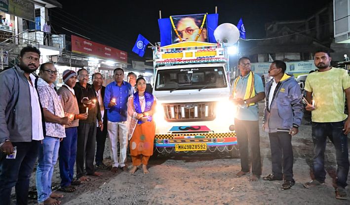 सायंकाळी भव्य भीमज्योत रॅली काढण्यात आली. रॅलीत विद्यापीठ सिनेट सदस्य तनुश्री आत्राम यांनी डॉ.बाबासाहेब आंबेडकर यांच्या रथाचे दर्शन घेऊन अभिवादन केले. तसेच रॅलीतही सहभागी झाल्या. यावेळी ज्ञान प्रसारक मंडळाचे अध्यक्ष एकनाथ चांदेकर, सचिव सुरेंद्र अलोणे, प्रशांत भिमटे, संदीप ढोलगे, संजय ओंडरे, रामचंद्र ढोलगे, देवाजी अलोणे, राजानंद दहागावकर, परशुराम दहागावकर आदी समाजबांधव उपस्थित होते.