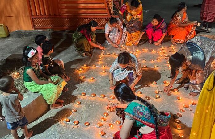 यावेळी दिव्यांमधून शुभ दीपावली साकारून सर्वांचे लक्ष वेधून घेण्यात आले. महिलावर्गाने या दीपोत्सवासाठी विशेष मेहनत घेतली. (अधिक बातमी खाली वाचा)