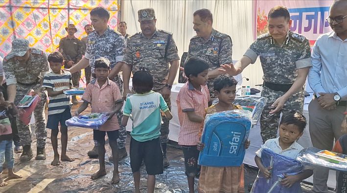 पोलीस मदत केंद्राच्या लोकार्पणप्रसंगी रविवारी जनजागरण मेळावाही आयोजित केला होता. यावेळी महिलांना साड्या, चप्पल, पुरुषांना घमेले, ब्लॅकेट, स्वयंपाकाच्या भांड्यांचा संच, मच्छरदाण्या, युवकांना लोअर पॅन्ट, टि-शर्ट, नोटबुक, पेन, स्कुल बॅग, कंपास, मुलांना क्रिकेट बॅट, बॉल, स्टंप संच, व्हॉलीबॉल नेट, व्हॉलीबॉल तथा बालकांना चॉकलेट, बिस्कीटांचे वाटप करण्यात आले.
