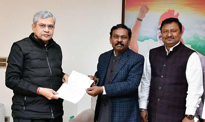 गडचिरोली : गडचिरोली जिल्ह्याच्या सर्वांगीण विकासासाठी अत्यंत महत्त्वाच्या आणि दीर्घकाळ प्रलंबित असलेल्या वडसा-गडचिरोली या रेल्वेमार्गाच्या कामाला गती मिळण्यासह, जिल्ह्यातील प्रस्तावित इतर रेल्वेमार्गांचे काम मार्गी लागण्यासाठी माजी खासदार तथा भाजपचे राष्ट्रीय महामंत्री (एसटी मोर्चा) डॅा.अशोक नेते यांनी दिल्लीत रेल्वेमंत्री अश्विनी वैष्णव यांची भेट घेतली. नक्षलवादाच्या समस्येमुळे तसेच अपुऱ्या दळणवळण सुविधांमुळे या जिल्ह्याच्या विकासाला अनेक मर्यादा आहेत. आता परिस्थिती हळूहळू बदलत असल्याने विकासाच्या प्रकल्पांना अधिक गती देण्याविषयी त्यांनी रेल्वेमंत्र्यांना निवेदन देऊन चर्चा केली.