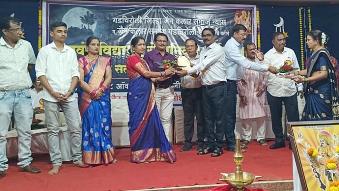 गडचिरोली : गडचिरोली जिल्हा जैन कलार समाज न्यास व जैन कलार समाज गडचिरोली शहराच्या वतीने शहरातील जैन कलार समाजाचा स्नेहमिलन सोहळा आणि कोजागिरीचा कार्यक्रम बुधवारी (8 ऑक्टोबर) कमल-केशव कात्रटवार सभागृहात उत्साहात पार पडला. यावेळी समाजातील ज्येष्ठ नागरिक, सेवानिवृत्त कर्मचारी व गुणवंत विद्यार्थ्यांचा सत्कार करण्यात आला. समाजाची प्रगती व हितासाठी या कार्यक्रमात विचारमंथन करण्यात आले.