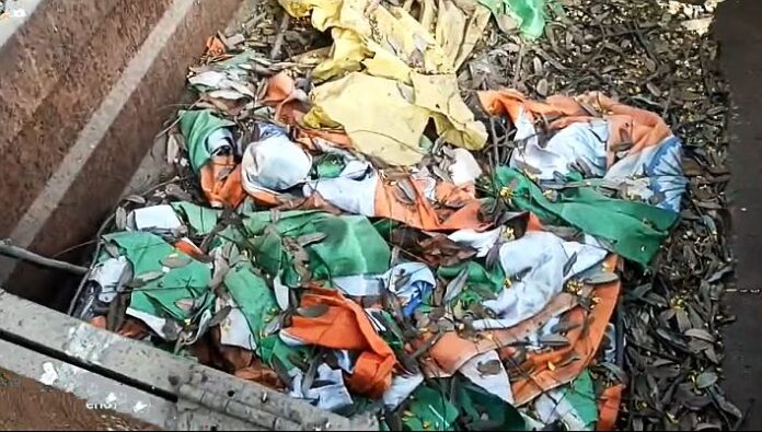 कुरखेडा : जो तिरंगी राष्ट्रध्वज मोठ्या अभिमानाने राष्ट्रीय सणांना सरकारी आणि खासगी कार्यालयांवर आणि अलिकडे घरांवरही फडकविला जातो, त्याचा कुरखेडा नगर पंचायतमध्ये चक्क कचऱ्यात फेकून अवमान करण्यात आला आहे. अत्यंत धक्कादायक आणि राष्ट्रप्रेमाला ठेच पोहोचवणारी ही घटना उघडकीस आल्यानंतर नागरिकांमध्ये संतापाची लाट उसळली आहे. मात्र ध्वजसंहिता बासनात गुंडाळून राष्ट्रध्वजाचा अवमान होताना उघड्या डोळ्यांनी पाहूनही अद्याप याप्रकरणी कोणावरही कारवाई झालेली नाही. (अधिक बातमी खाली वाचा)