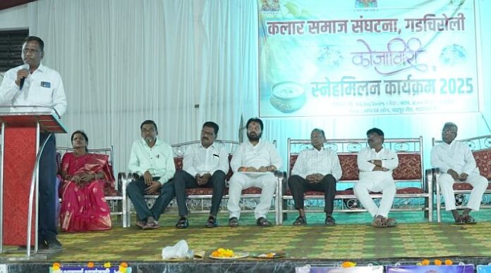 गडचिरोली : कलार समाज संघटना गडचिरोलीच्या वतीने कोजागिरी व स्नेहमिलन कार्यक्रम अॅड.बाळकृष्ण मांडवे यांच्या अध्यक्षतेखाली संपन्न झाला. कार्यक्रमाचे उद्घाटक म्हणून दामदेव मंडलवार, प्रमुख अतिथी म्हणून निरंजन पाटील वासेकर, रविंद्र वासेकर, हेमंत जंबेवार, सुनील चडगुलवार, संजय गणवेनवार, वसंतराव मेश्राम, प्रकाश मासुरकर, मंजु वासेकर, रेखा मेश्राम हे उपस्थित होते.