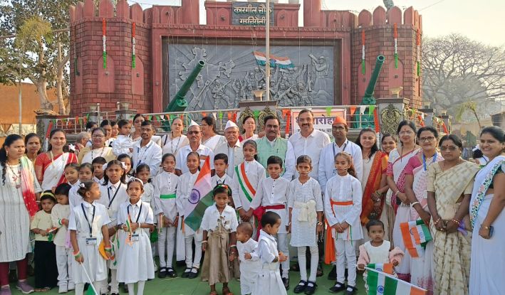 शहरातील कारगील चौकातल्या स्मारकावर सामाजिक कार्यकर्ते तथा पत्रकार उदय धकाते यांच्या हस्ते ध्वजवंदन करण्यात आले. यावेळी श्री गुरुदेव उच्च प्राथमिक शाळा, राजीव गांधी प्राथमिक शाळेतील विद्यार्थी आणि शहरातील नागरिक उपस्थित होते. राजीव गांधी प्राथमिक शाळेतील विद्यार्थ्यांनी देशभक्तीपर गीतावर नृत्य सादर केले. कार्यक्रमाचे संचालन जेष्ठ शिक्षक तुषार निकुरे यांनी केले. याप्रसंगी कारगील चौक दुर्गा उत्सव मंडळाचे उपाध्यक्ष रेवनाथ गोवर्धन, सचिव प्रकाश भांडेकर, संजय गद्देवार, महेंद्र मसराम, रुपेश सलामे, बाळू मोटघरे, महादेव कांबळे, रामा हजारे, सुचिता धकाते, वनिता भांडेकर, संगीता धकाते, मुख्याध्यापिका मीरा मडावी, प्रा.सुनीता साळवे, संजय लांजेवार, विजय सुरपाम, साहिल गोवर्धन, गणेश मेश्राम तथा कारगील चौक परिसर व शहरातील नागरिक उपस्थित होते.