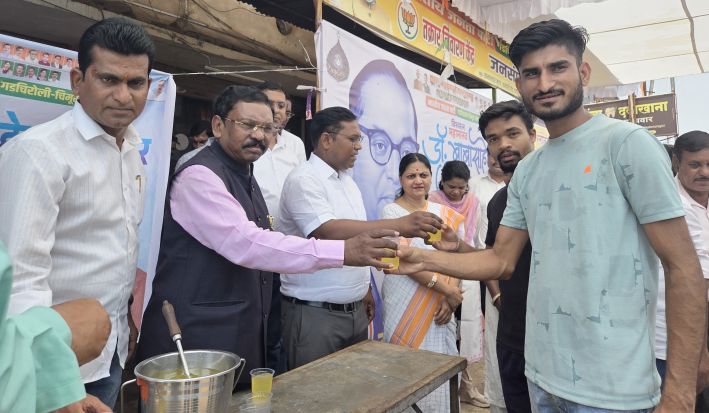 सध्या उन्हाचा तडाखा मोठ्या प्रमाणात जाणवत आहे. ही बाब लक्षात घेऊन जयंती उत्सवासाठी शहरात येणाऱ्या अनुयायांना व नागरिकांना थंडावा मिळावा या हेतूने मा.खा.डॉ.अशोक नेते यांच्या वतीने ‘शरबत वाटप’ उपक्रमाचे आयोजन चामोर्शी मार्गावरील जनसंपर्क कार्यालयासमोर करण्यात आले होते. भारतीय जनता पक्षाच्या वतीने हा स्तुत्य सामाजिक उपक्रम राबविण्यात आला. यावेळी डॅा.अशोक नेते, डॅा.मिलिंद नरोटे यांनी स्वत: अनेक नागरिकांना शरबत वाटप करून जयंतीच्या आनंदात सहभाग घेतला.