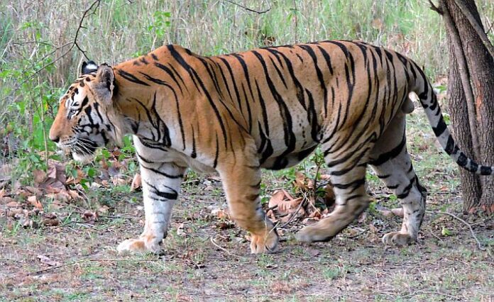 मार्कंडा कंसोबा वनपरिक्षेत्रातील जंगलात पट्टेदार वाघाचा वावर