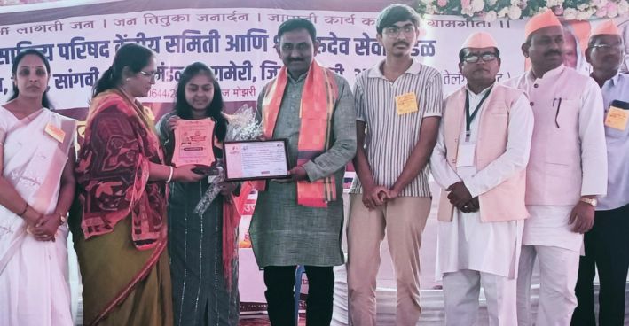 गडचिरोली : येथील ज्येष्ठ पत्रकार उदय बळीरामजी धकाते (गडचिरोली) यांना राष्ट्रसंत तुकडोजी महाराज यांच्या साहित्यानुरूप पत्रकारिता व सामाजिक क्षेत्रात सातत्याने उल्लेखनीय कार्य केल्याबद्दल गोयेगाव मंडल, केरामेरी जि.आसिफाबाद (तेलंगणा) येथे ‘श्रीगुरुदेव पत्रकारिता पुरस्कार’ प्रदान करून सन्मानित करण्यात आले. हा पुरस्कार दिवंगत पुरुषोत्तम हिरादेवे स्मृतीप्रित्यर्थ राष्ट्रसंत विचार साहित्य परिषद केंद्रीय समिती, चंद्रपूर (महाराष्ट्र) यांच्या वतीने प्रदान करण्यात आला.