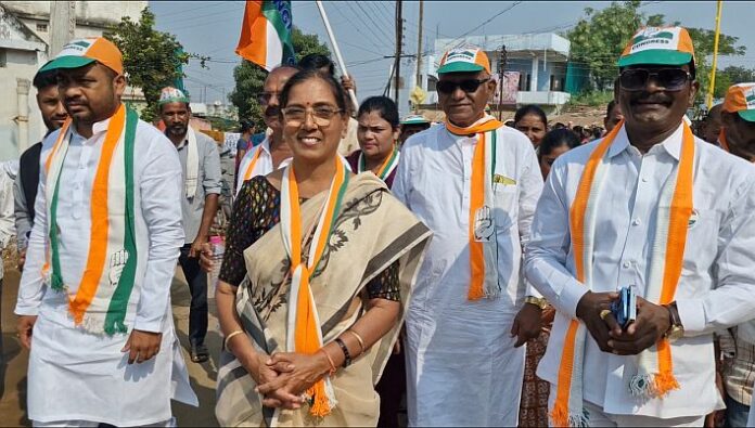 गडचिरोली : काँग्रेसच्या नगराध्यक्षपदाच्या उमेदवार कविता पोरेड्डीवार शहराच्या प्रत्येक प्रभागात फिरून सर्व परिसर पिंजून काढत आहेत. त्यांच्यासोबत शहराचे प्रथम नगराध्यक्ष सुरेश सावकार पोरेड्डीवार, काँग्रेसचे जिल्हाध्यक्ष महेंद्र ब्राह्मणवाडे आणि नगरसेवक पदाचे उमेदवारही लवाजम्यासह फिरताना दिसतात. मंगळवारी त्यांनी गोकुळनगर, चणकाईनगरच्या भागात पायी फिरताना त्या भागातील नागरिकांना मतांसाठी साद घातली.