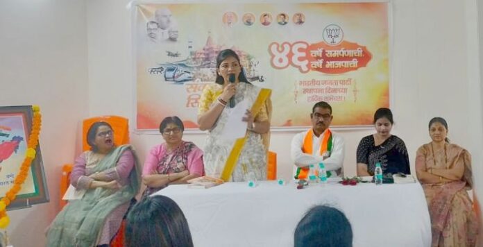 आमदार डॅा.मिलिंद नरोटे यांच्या जनसंपर्क कार्यालयामध्ये आयोजित भाजप महिला आघाडीच्या बैठकीत त्या बोलत होत्या. भाजपचे जिल्हाध्यक्ष प्रा.रमेश बारसागडे यांच्या अध्यक्षतेखाली झालेल्या या बैठकीला विशेष निमंत्रित सदस्य तथा अमरावती ग्रामीणच्या माजी जिल्हाध्यक्ष छाया दंडारे, गडचिरोली महिला आघाडीच्या जिल्हाध्यक्ष तथा माजी नगराध्यक्ष व नगरसेविका योगिता पिपरे, विद्यमान नगराध्यक्ष प्रणोती निंबोळकर, भाजपा राज्य परिषदेच्या सदस्य डॉ.चंदा कोडवते, माजी जि.प.अध्यक्ष योगिता भांडेकर, तालुकाध्यक्ष रोशनी वरघंटे आदी प्रामुख्याने उपस्थित होत्या.