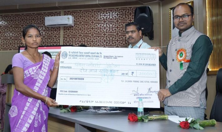 गडचिरोलीतील समाजकल्याण सभागृहात झालेल्या गडचिरोली तालुक्यातील मेळाव्यात स्मिता चौधरी, बहिणाबाई आत्राम, विमल मडावी आणि शशिकला दुमाने या एकल महिलांना त्यांच्या व्यवसायासाठी प्रत्येकी एक लाख रुपयांचे धनादेश प्रदान करण्यात आले.